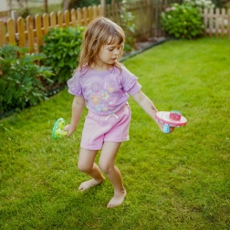 Il set è realizzato in plastiche di alta qualità e resistenti, adatte al gioco quotidiano sia all’aperto sia in casa. Supporta lo sviluppo naturale di destrezza, creatività e coordinazione: ideale per momenti di famiglia attivi.
