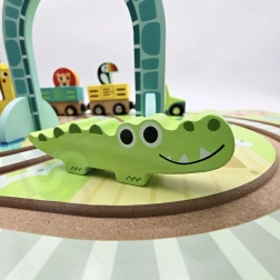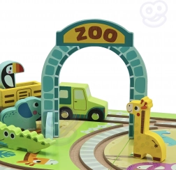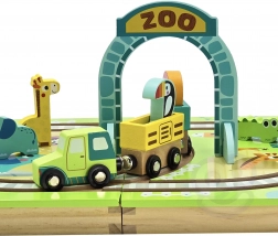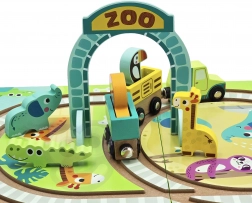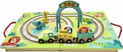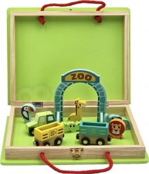 - Contenuto del set: binari in legno integrati nella valigetta, locomotiva e vagoni magnetici, 5 animaletti, portale ZOO pieghevole