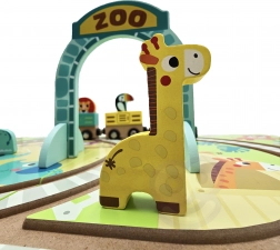 La pista ferroviaria colorata con animaletti e il portale ZOO pieghevole incoraggia storie e gioco creativo dei bambini.