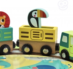 Scopri l’incantevole set ferroviario in legno a tema ZOO, che dopo il gioco si trasforma in una pratica valigetta. Colorati binari, locomotiva con vagoni magnetici e adorabili animaletti stimolano fantasia, motricità fine e pensiero logico dei bambini dai 3 anni.