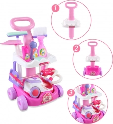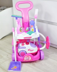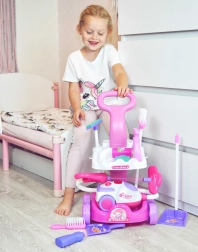 Manico ergonomico, supporti per accessori e tutto in ordine in un solo posto. I bambini possono spingere facilmente il carrello per la stanza.