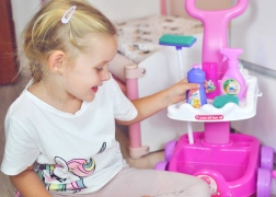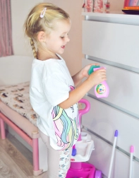 Dal mop e dalla scopa alle palette, alla spugna e alle imitazioni di detergenti – tutto ciò di cui i piccoli aiutanti hanno bisogno.