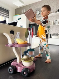 Il set riproduce un vero carrello delle pulizie e incoraggia i bambini a esplorare la responsabilità e la cura della pulizia.