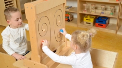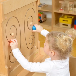 Il tabellone offre una forma divertente di apprendimento e sviluppa abilità motorie nei bambini. Combina elementi educativi e di gioco.