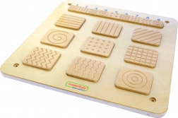 Questo pannello sensoriale in legno offre ai bambini un ambiente sicuro e stimolante per conoscere il mondo attraverso il tatto. Il gioco consiste nel fatto che il bambino, con gli occhi chiusi, esplora prima la piccola tessera testurizzata e poi cerca la sua corrispondenza tra le nove più grandi. In questo modo naturale rafforza integrazione sensoriale, concentrazione e capacità di confronto.