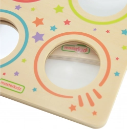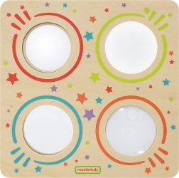 Scopri il mondo dell’ottica in modo giocoso con la tavola in legno MASTERKIDZ. Quattro elementi circolari – specchio convesso, specchio concavo, specchio piano e lente d’ingrandimento – offrono ai bambini esperimenti visivi, promuovono curiosità, consapevolezza di sé e sviluppo sensoriale. La robusta struttura in legno è resistente ed ecologica.