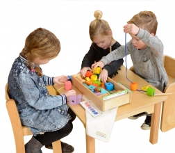 L’attività può consistere nel raggruppare, ordinare, contare o infilare le perline. Possono aiutare le basi su cui infilare le perline. I bambini possono usare le schede con compiti che mostrano possibili motivi, oppure affidarsi alla propria creatività.