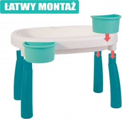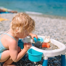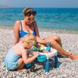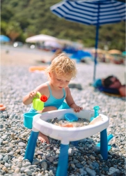 Scopri il versatile tavolino 2in1 per acqua e sabbia, che trasforma ogni pomeriggio in una piccola vacanza. Due vasche separate consentono di combinare giochi d’acqua e attività con la sabbia, mentre le gambe stabili e la plastica resistente garantiscono un gioco sicuro in casa, in giardino e in spiaggia.