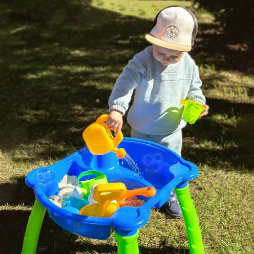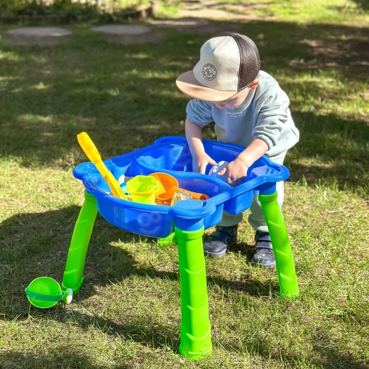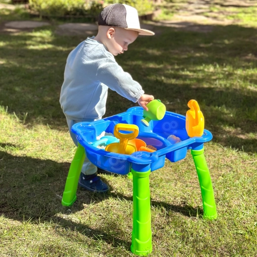 La struttura in plastica, leggera ma robusta, si monta in pochi istanti. Il tavolino è perfetto per uso esterno e interno: in giardino, sul balcone, nella sala giochi, in spiaggia o nella sabbiera. I colori vivaci e le forme piacevoli invitano al gioco e mantengono alta l’attenzione dei bambini.