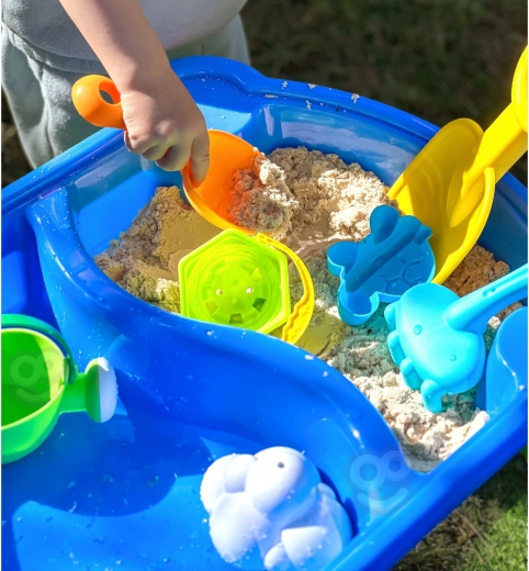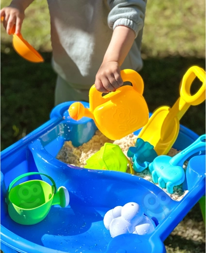 Scopri il divertimento con acqua e sabbia con il tavolino WOOPIE 2in1. I due scomparti separati permettono ai bambini di versare l’acqua in uno e la sabbia nell’altro, così possono raccogliere, travasare, setacciare e modellare senza disordine intorno. Il set di accessori stimola il gioco sensoriale, sviluppa la motricità fine e la creatività.