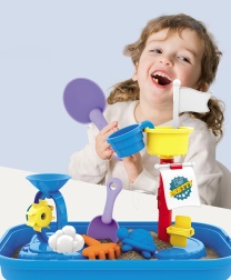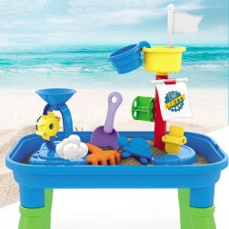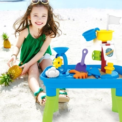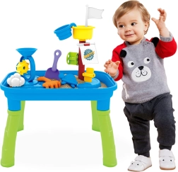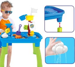 Combina un tavolo da gioco con acqua e sabbia in un unico prodotto, permettendo diverse possibilità di gioco.