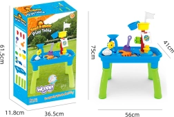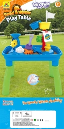 Tavolo da gioco per bambini del marchio Woopie è ideale per giocare con acqua e sabbia. Include molti accessori tra cui formine, rastrelli e palette. Adatto per gioco indoor e outdoor.