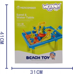 Il Tavolo d'acqua e sabbia WOOPIE è perfetto sia per giochi in giardino che in casa. Offre un'ottima combinazione di giochi con sabbia e acqua, e grazie agli elementi interattivi come i mulinelli d'acqua, il gioco diventa ancora più divertente.
