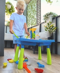 Dai due scomparti, il tavolo consente di giocare contemporaneamente con acqua e sabbia, offrendo molteplici possibilità di divertimento.