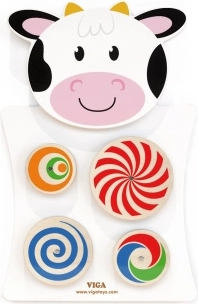 La tavola manipolativa in legno a forma di mucca del marchio VIGA offre ai bambini un modo divertente di imparare. I dischi girevoli con motivi allenano la motricità fine, il pensiero logico e la percezione visiva. La superficie è trattata con vernici sicure e atossiche in colori vivaci e il legno proviene da fonti certificate FSC.