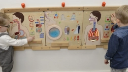 La lavagna favorisce l'apprendimento del processo respiratorio tramite il gioco, spiegando le varie fasi e permettendo ai bambini di interagire con il sistema.
