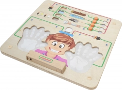 - Secondo circuito (parte inferiore) accende una luce quando il bambino mette entrambe le mani sul pannello, dimostrando che anche il corpo umano è un conduttore
