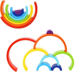 Scoprite la magia del gioco libero con l'arcobaleno in legno TOOKY TOY – un set di 8 archi colorati per bambini dai 18 mesi. Con gli archi si possono creare facilmente arcobaleni, tunnel e torri che sviluppano la motricità fine, il pensiero logico e la concentrazione. La realizzazione in legno di qualità, con colori atossici e certificazione FSC, garantisce un divertimento sicuro e sostenibile.