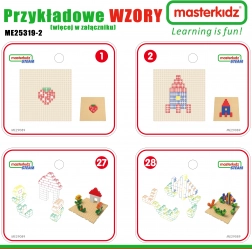 Scopri un mondo creativo con il tavolo educativo in legno MASTERKIDZ con accessori STEM. I bambini possono inserire pioli colorati, viti e ingranaggi, creare motivi e costruzioni sul pannello forato e su quattro basi per mattoncini. Il set supporta motricità fine, pensiero logico e cooperazione tra più bambini ed è compatibile con i set di costruzioni più popolari.