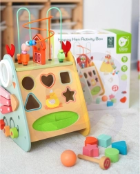Scopri il versatile cubo montessori in legno 10in1 CLASSIC WORLD, che riunisce le attività preferite dei bambini in un unico centro intelligente di gioco e apprendimento. Include xilofono, labirinto, percorso con perline, ingranaggi, sorter per forme e altri elementi per lo sviluppo della motricità fine, della coordinazione occhio–mano e della creatività. Realizzato in legno di qualità, con colori atossici e adatto dai 18 mesi.