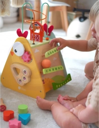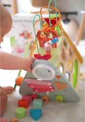 Xilofono, labirinto, perline, ingranaggi, sorter e altri elementi intelligenti catturano l’attenzione dei bambini per ore e favoriscono l’apprendimento attraverso il gioco.