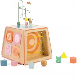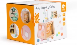 Scopri l’apprendimento versatile attraverso il gioco con il cubo attività in legno 6in1 CLASSIC WORLD. Questo colorato box educativo offre un labirinto di perline, ingranaggi, elementi scorrevoli, forme geometriche e sportellini segreti – ideale per lo sviluppo della motricità fine, della coordinazione e del riconoscimento di forme e colori.