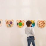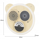 Questa tavola in legno con motivi d’orso scalda il cuore di ogni bambino grazie alla sua forma divertente e agli elementi interattivi.