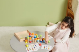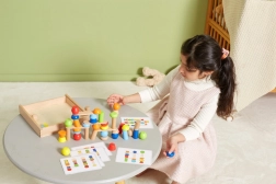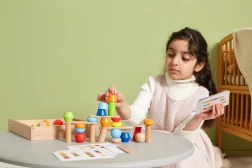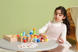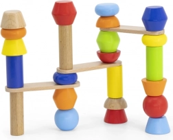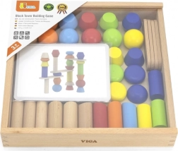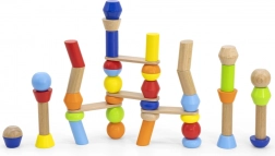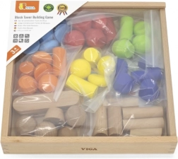 Grazie a queste costruzioni in legno, i bambini possono costruire straordinarie torri seguendo le carte o la loro immaginazione. Il giocattolo sostiene l'equilibrio, le abilità pratiche, l'immaginazione e il pensiero logico.