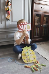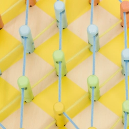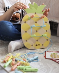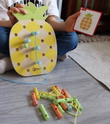 Questo giocattolo aiuta i bambini a sviluppare le abilità motorie fini e la coordinazione mano-occhio durante l'infilatura dei lacci attraverso i pioli, migliora la creatività e l'immaginazione.