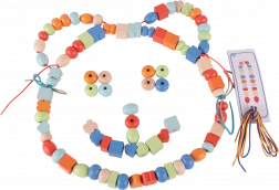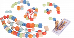 Le colorate perline di legno con forme e colori diversi supportano la motricità fine e la creatività dei bambini.