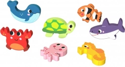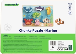 Puzzle in legno Mondo Marino di Tooky Toy sono un ottimo giocattolo per lo sviluppo del tuo bambino. Contiene i seguenti elementi: