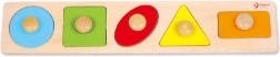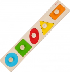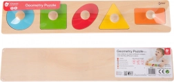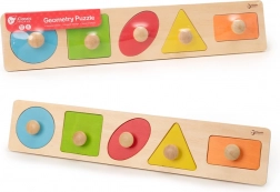 Il puzzle in legno Classic World è progettato per bambini dai 12 mesi. Questo giocattolo include una tavola con forme sagomate e 6 pezzi che corrispondono alle forme sulla tavola. Tutti i pezzi sono facili da afferrare grazie a piccoli pomelli.