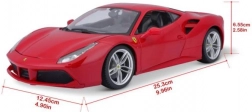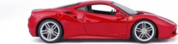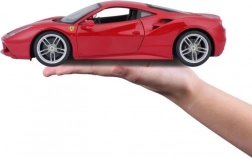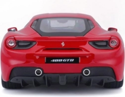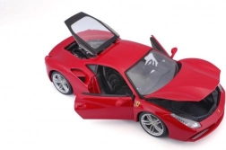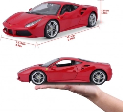 Riproduzione dettagliata della Ferrari 488 GTB rossa con proporzioni autentiche, loghi e cerchi sportivi in scala 1:18.