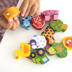 Questo gioco educativo da infilare favorisce la pazienza, la concentrazione e la creazione di storie ispirate alla vita in fattoria. I pezzi sono robusti, piacevoli al tatto e ideali per le piccole mani dei bambini.