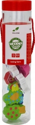 Il set è riposto in una pratica confezione con coperchio e manico, così si ripone facilmente e si porta ovunque, in viaggio o dai nonni.