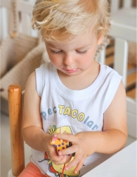 Far passare il cordino attraverso i pezzi in legno insegna ai bambini movimenti precisi delle dita e migliora la coordinazione occhio–mano. Un divertimento che sviluppa le abilità in modo naturale.