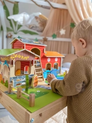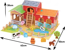 Costruisci la tua fattoria a casa! La mega fattoria in legno WOOPIE GREEN introduce i bambini nel mondo della natura, dove imparano a prendersi cura degli animali e a scoprire la vita quotidiana in campagna. Edifici realistici (scuderia, fienile e pollaio), laghetto e figurine dettagliate incoraggiano il racconto creativo e il gioco di ruolo.