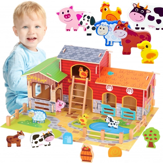 Edifici, laghetto e sei animaletti adorabili offrono ai bambini tutto ciò di cui hanno bisogno per creare la propria fattoria e inventare storie senza fine.
