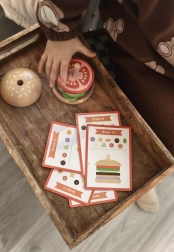 La puzzle-burger in legno WOOPIE GREEN offre ai bambini dai 3 anni una porzione gustosa di apprendimento e divertimento. Seguendo le carte istruzione, i piccoli chef scelgono gli ingredienti giusti, confrontano la loro colore e spessore e li impilano nell’ordine corretto. Con la stessa facilità possono creare anche “ricette” proprie, sviluppando creatività e immaginazione.