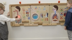 Il pannello educativo Masterkidz mostra in modo chiaro ai bambini il percorso del cibo nel corpo – dalla bocca fino all’intestino. Grazie alle illustrazioni e alle indicazioni luminose delle singole fasi, i bambini comprendono facilmente cosa accade nella cavità orale, nell’esofago, nello stomaco, nel fegato e negli intestini. Le etichette sono in inglese, così i bambini entrano naturalmente in contatto con una lingua straniera.