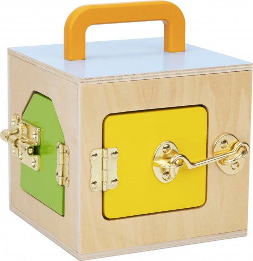 - Box con 3 serrature diverse, 8 pietre di legno, tabella meteo in legno, set per il conteggio 1–10, album da colorare Animali Livello 1, 6 pastelli morbidi, libricino “Ho 3 anni”, guida per genitori