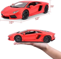 Il modello BBURAGO riproduce fedelmente le linee decise e l’aerodinamica della LAMBORGHINI Aventador. In scala 1:18 risalta su mensole e vetrine e, grazie alla qualità della lavorazione in metallo, appare robusto e premium. L’accattivante vernice arancione enfatizza il carattere esclusivo della supersportiva.