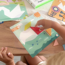 Con il tangram magnetico TOOKY TOY i bambini compongono facilmente forme e immagini su basi predisposte. I colorati pezzi geometrici aderiscono alla base, rendendo la manipolazione comoda a casa e in viaggio. Il gioco sviluppa immaginazione, concentrazione e la capacità di risolvere compiti in autonomia.