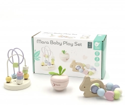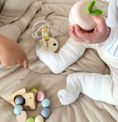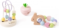 Il set di giochi motivazionali in colori pastello per neonati del marchio Classic World è progettato per portare gioia e stimolare i sensi del tuo bambino fin dai primi giorni. Questo set in legno include diversi splendidi elementi che aiutano i bambini a sviluppare motricità e concentrazione. Il coniglietto felice è un sonaglino con perline che affascina per i suoi colori e i suoni melodiosi. Agitare questo giocattolo stimola la curiosità del bambino e favorisce lo sviluppo delle capacità uditive. Il labirinto con perline è un altro elemento del set: i bambini possono far ruotare e spostare le perline, sviluppando così concentrazione e abilità motorie. I giochi di questo set presentano una texture morbida e colori pastello, piacevoli sia per i bambini che per i genitori.