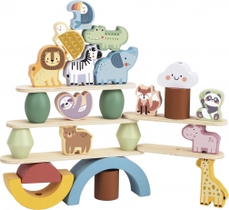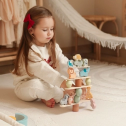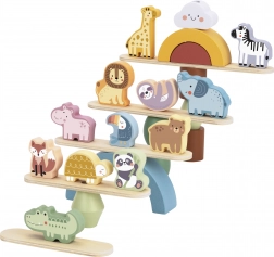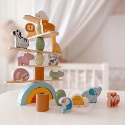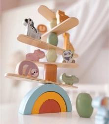 Il giocattolo offre tre livelli di difficoltà, adattati all'età del bambino, ed è ideale per bambini dai 18 mesi. Giocando, i bambini migliorano l'equilibrio, sviluppano abilità di manovra precisa e costruiscono torri bilanciate impressionanti con gli animali.