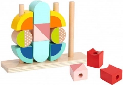 Pezzi in legno levigato dai toni pastello, piacevoli al tatto e sicuri per le piccole mani. Ideali dai 2 anni.