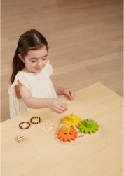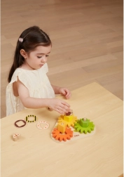 Grazie agli ingranaggi in movimento, i bambini imparano i principi della meccanica e della fisica, come il trasferimento di forza e causa ed effetto.