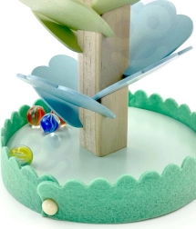 Ogni impatto della biglia sulla “foglia” colorata crea un suono delicato che ricorda il cimbalom. I bambini collegano così gli stimoli visivi a quelli sonori, sviluppando la percezione sensoriale.