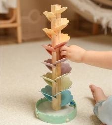 Il gioco musicale in legno, noto come albero a biglie, trasforma ogni discesa della biglia in un concerto rilassante. Le “foglie” variopinte creano il tracciato lungo il quale le biglie scendono e a ogni contatto generano toni piacevoli e delicati. Il gioco favorisce concentrazione, pazienza e naturale curiosità.