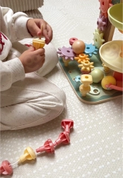 - Motricità fine – Manipolando palline, pioli e infilature, il bambino esercita la precisione nei movimenti delle mani e delle dita